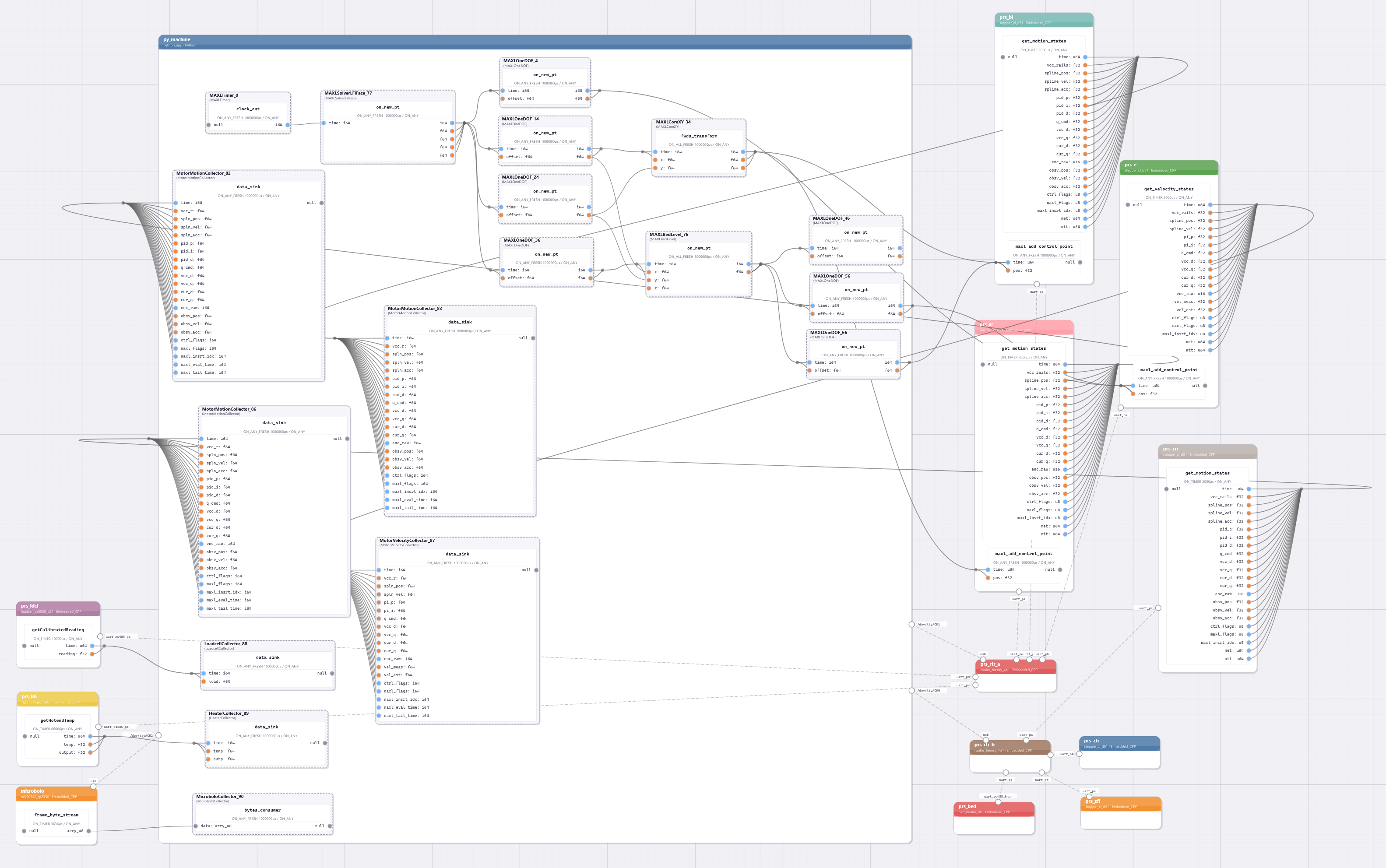 In the simplest sense, GCode just a way to communicate with machines. Our main frustration with it is that it splits our computational representation of machines: we have components of our workflows above and below GCode, but these are not connected. So our first key goal is to develop a systems architecture that lets us connect software components in the realtime “control” domain with the higher level “planning and tasking” domain. Taking a cue from software design, we also want to build these larger systems from a reuseable set of components (motor drivers, sensors, control software, planning software etc). The main challenge here is to develop an architecture that is descriptive and broad enough to include all of the required parts, but that does not introduce an amount of computing overhead that would prevent us from doing performant, realtime control.