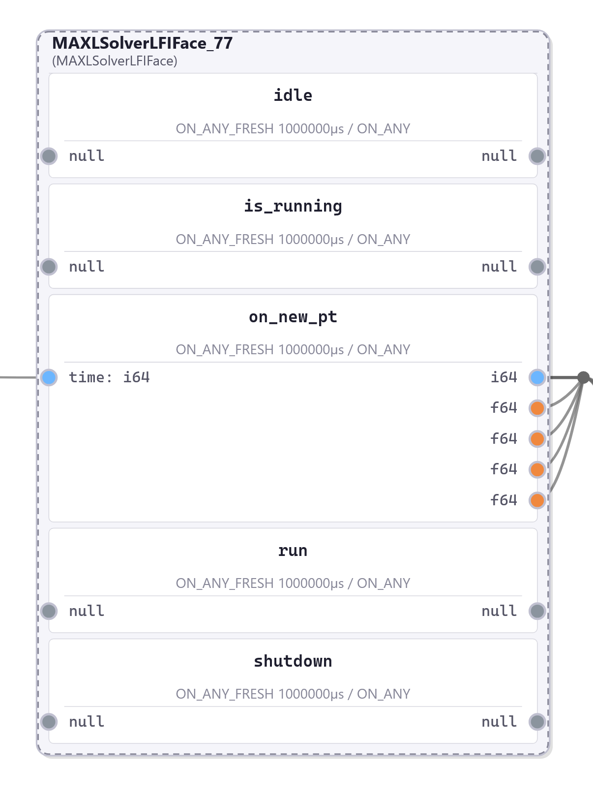 The blair winch project is another example. Rather than trying to articulate the controller as a MAXL block, and have motors follow trajectories, I simply update torque requests to motors in soft real-time, which is acceptable for this application. In fact, that system doesn’t use any graph configuration at all (same with i.e. the motor modeller), the RPCs are enough. This is OK because the system is quite slow overall: the network is much faster.