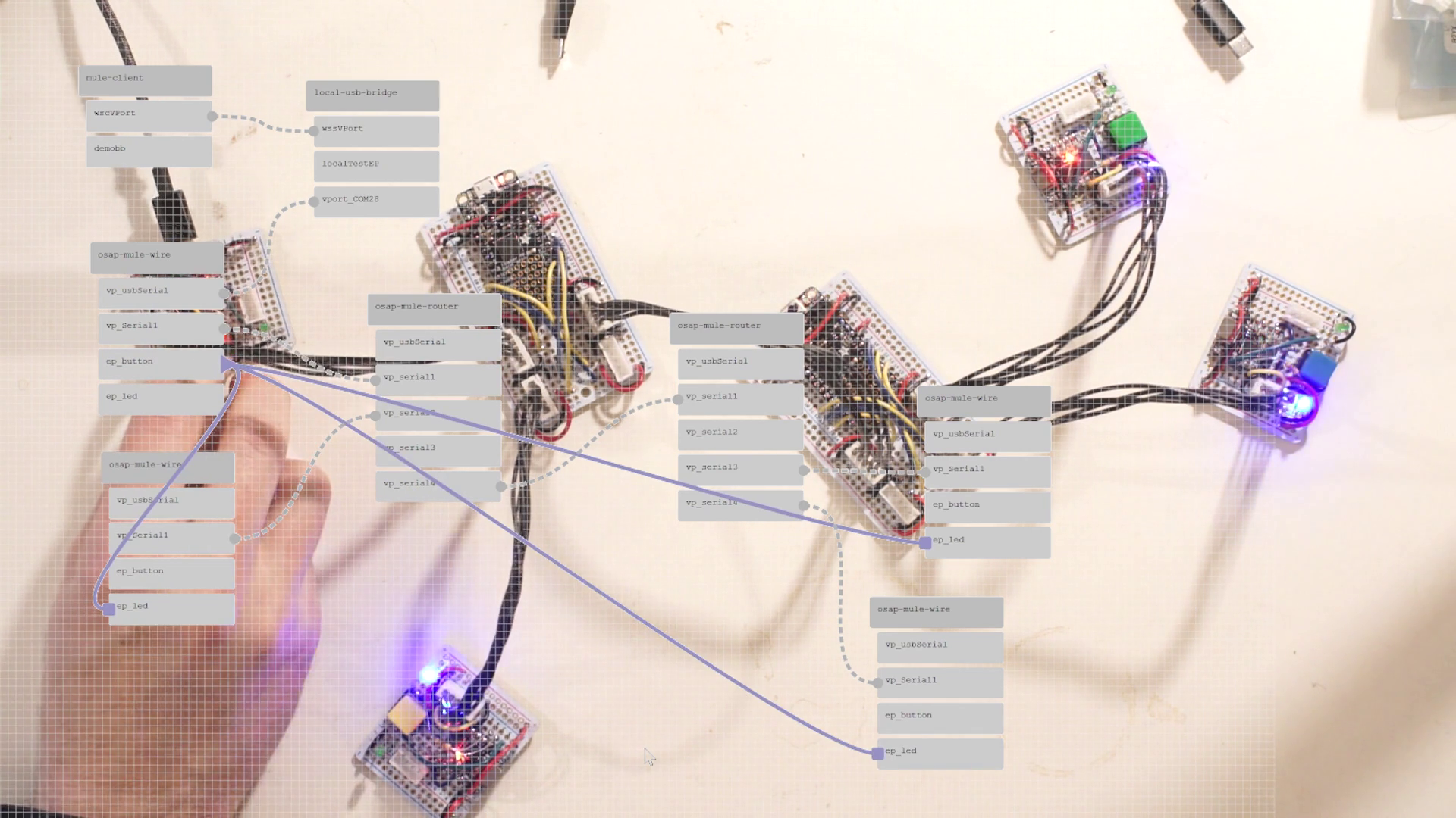 In python- and javascript-based PIPES / OSAP runtimes, this shouldn’t be too much of a challenge, and micropython may be a good way to implement the same in embedded devices, although that has its own drawbacks. I expect that a true computer scientist type of magician could figure out how to spot-compile functions for a microcontroller and build a kind of partial bootloader to inject new functions on the fly: it may also be the case that a building a network bootloader handle in OSAP is enough, and where we want to add new blocks we simply recompile the device’s entire firmware, reload it, and reset it.