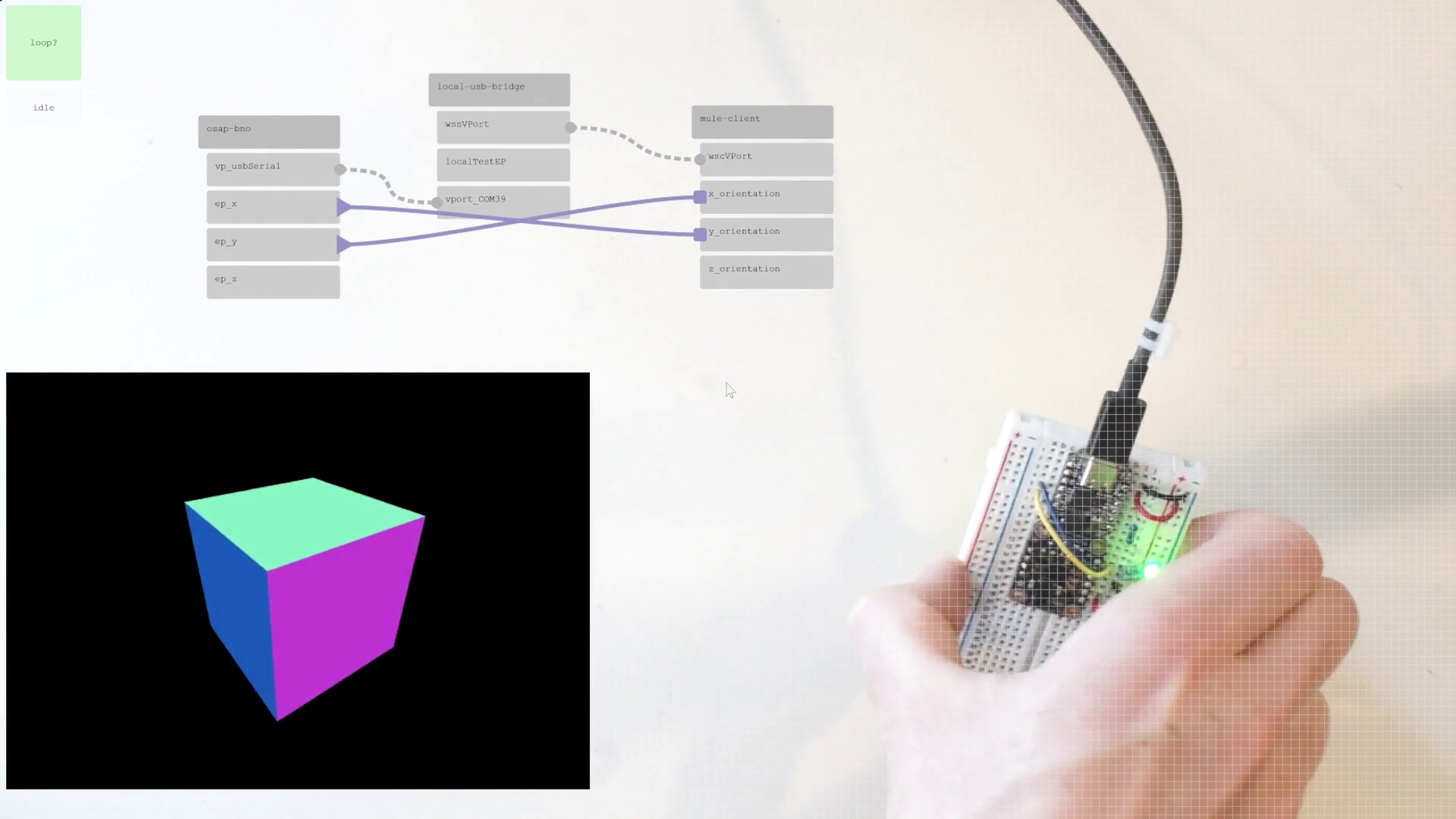 A graph visualizer and editor would let systems developers quickly debug which hardware modules are connected, inspect their APIs, and build low-level data streams between devices. I have built a similar system in the past, but made the mistake of over burdening the graph representation: programs there had to be described entirely as graph entities. In an updated version, I would like to be able to interchangeably use scripting and graphs. I suspect that graph representations will be useful for low-level configurations, but that high level orchestration will take place using scripts.