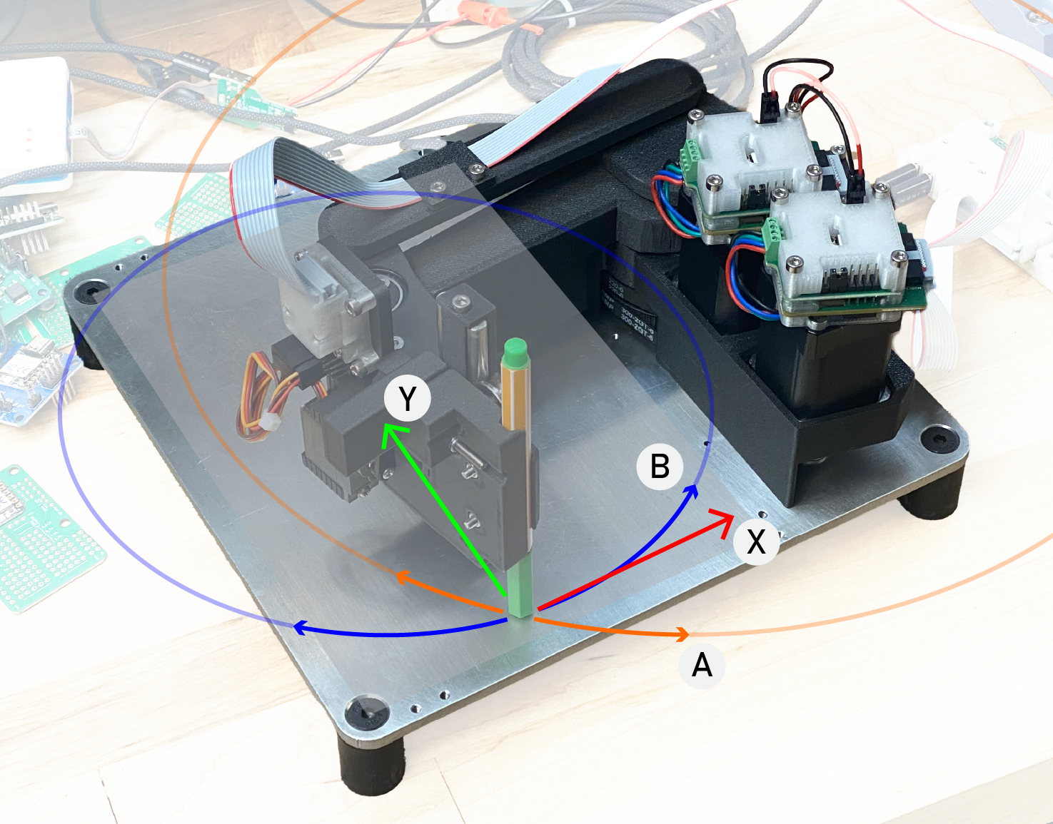 In some proposed schemes, we could develop a library of possible kinematic arrangements, attach an accelerometer to the end effector (as I have done here to work out resonances), and learn how each actuator’s acceleration corresponds to end effector motion. Backing out linear transforms is presumably as easy as filling in the matrix that relates one system to the other (see EQN (?)), but nonlinear transforms would also require that we guess the composition of the transform function and its inverse. Inprecise models like neural networks might get close in this regard, but are probably too much of a black-box to be truly suitable to the task: in machine design and control, it is invaluable to have precise definitions of our core systems.