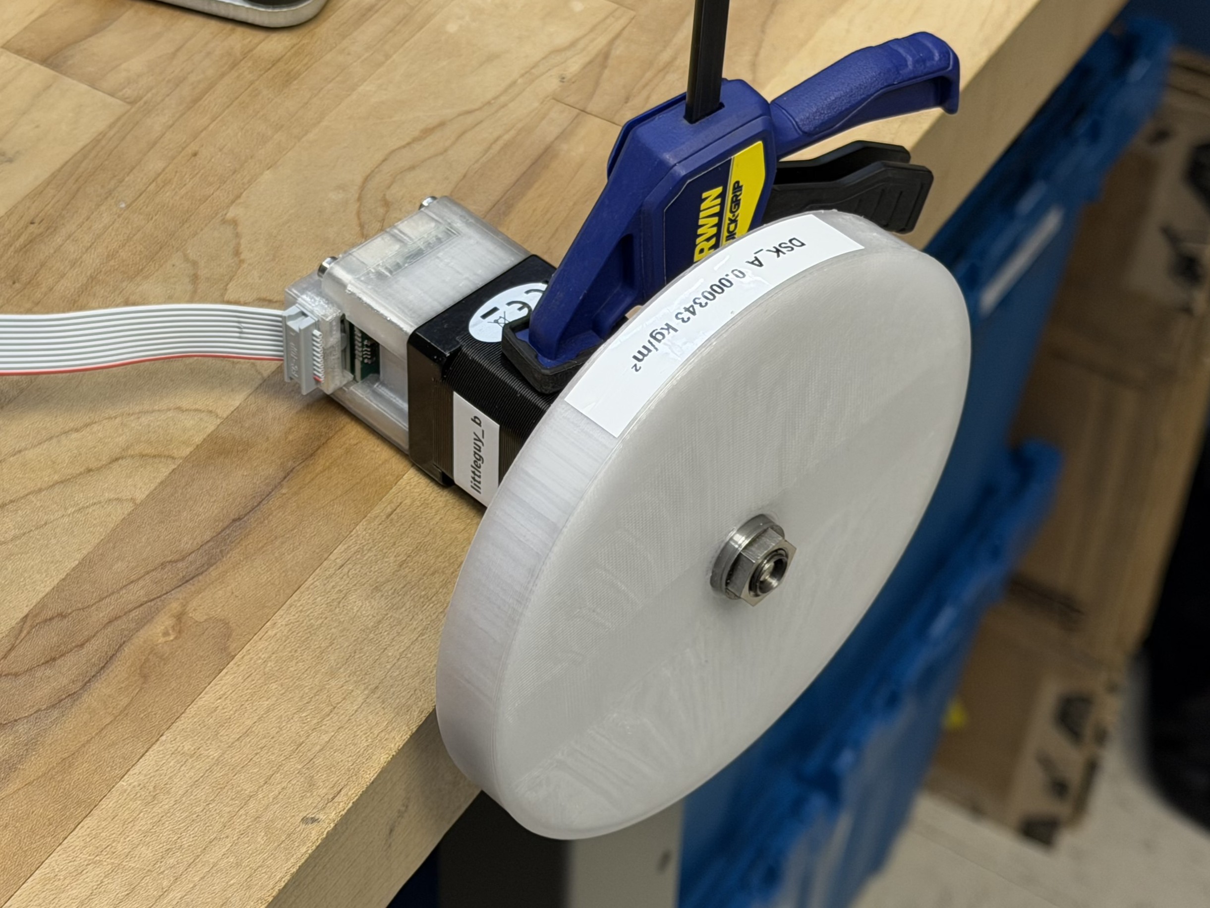 Most of these values can be easily measured in the real world: \(R\) is a simple multimeter test, and \(L\) can be measured using an LCR probe. \(V\) and \(A\) are measured in the motor controller’s firmware, \(\Theta\) (and its derivatives for velocity \(\omega_m\) and acceleration \(\dot{\omega_m}\)) are also measured in firmware (using an encoder and kalman filter). Rotor Inertia \(J\) is typically included in a motor datasheet, but I have at times taken motors apart to weigh and measure this when datasheets seem untrustworthy. That leaves \(k_t, k_e\) and \(k_d\) to fit computationally, which we will see later.
