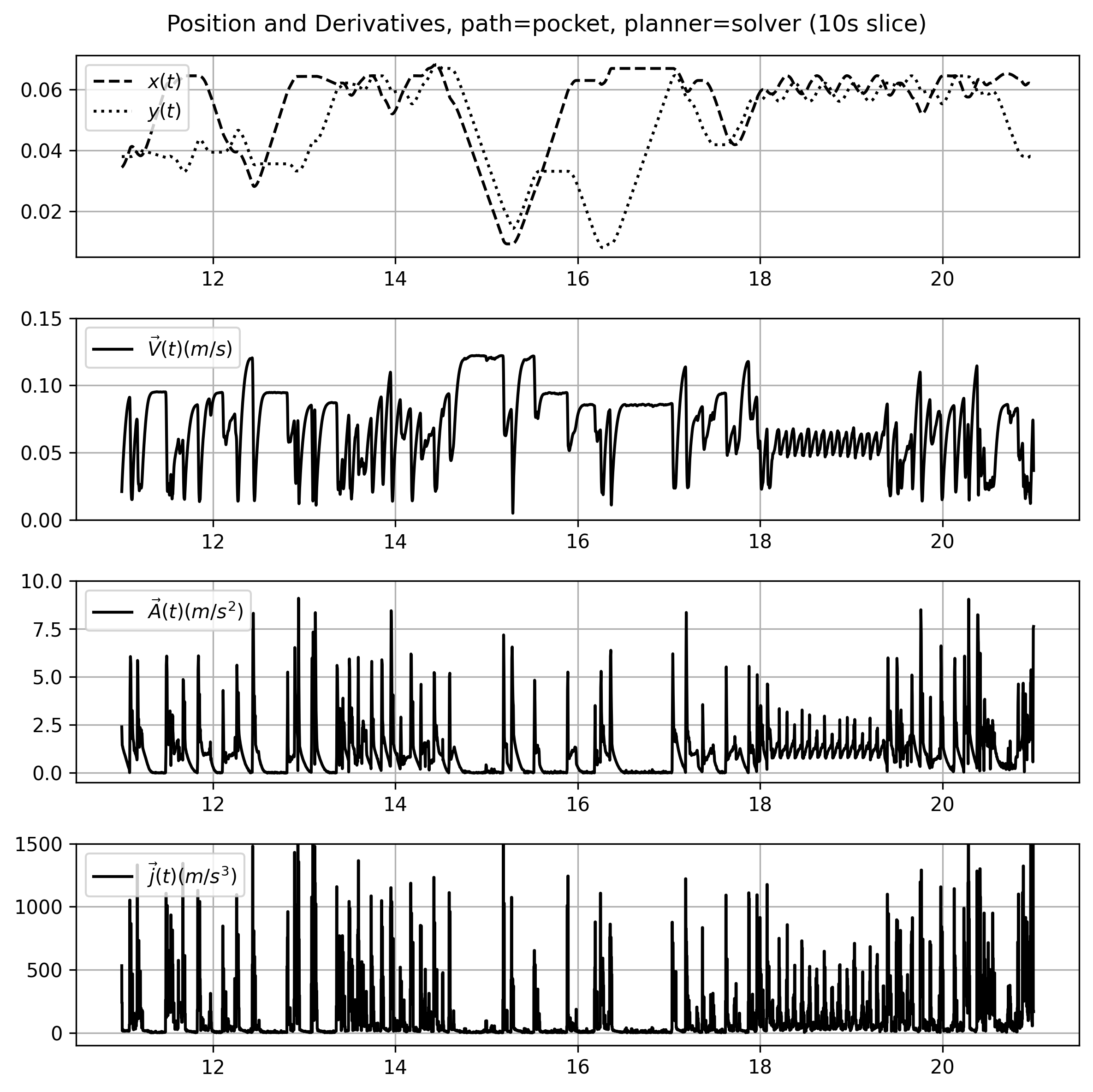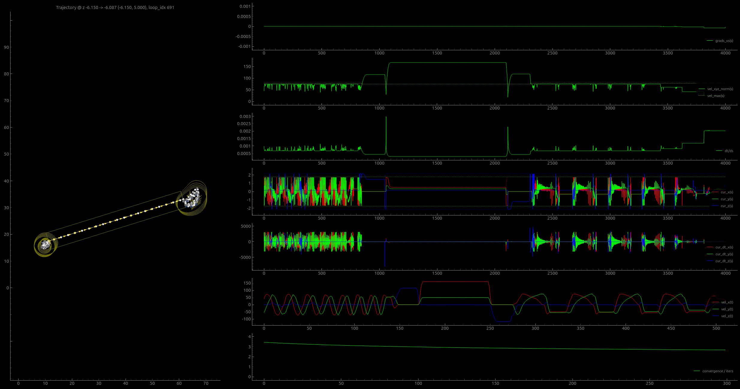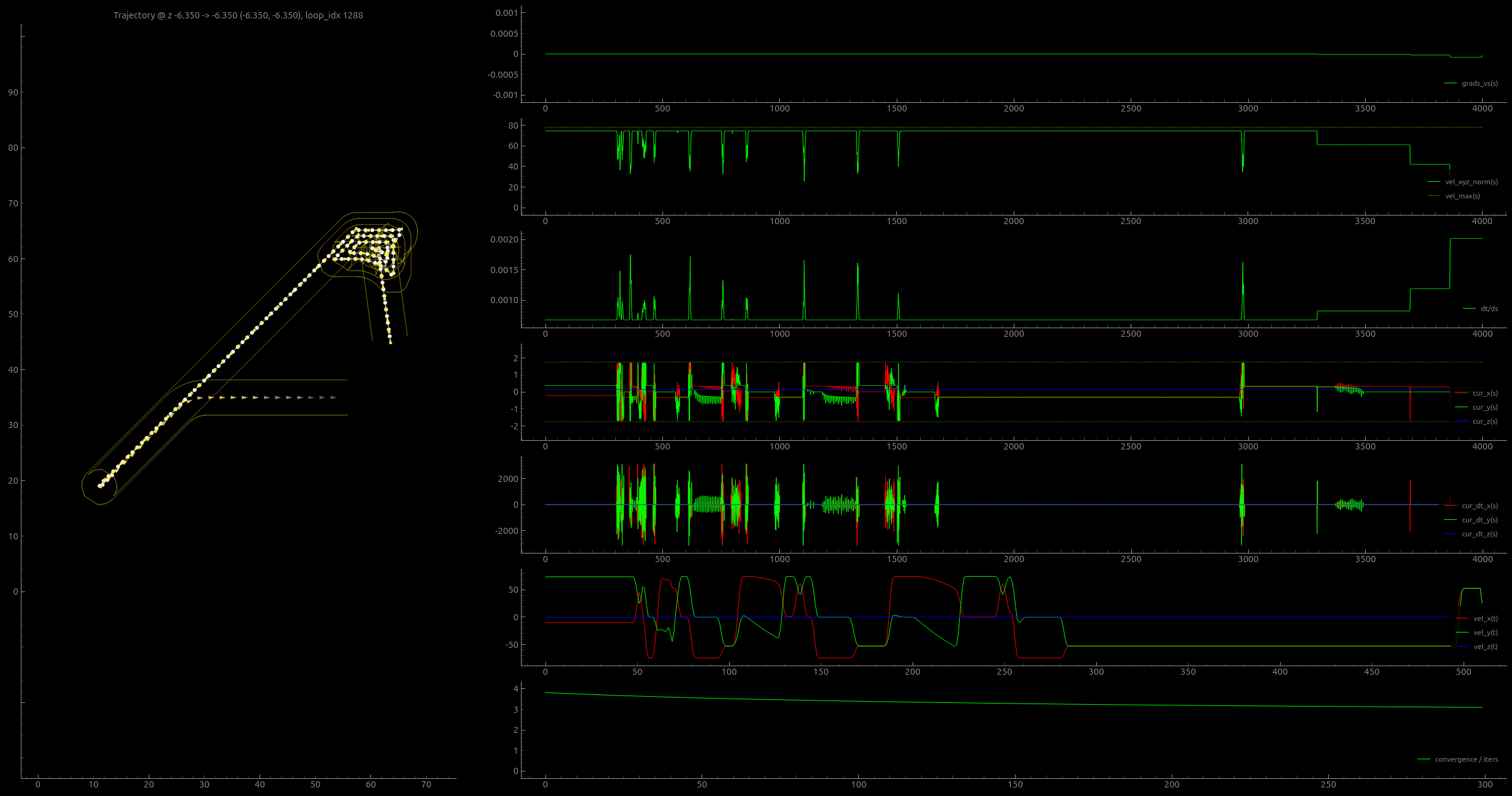 (about s-curves) tying processes in to these planners can be cumbersome, as they use incomplete models and “think linearly” - i.e. we can’t arbitrarily add constraints - as I will show in the next chapter, our solver architecture allows us to add process control physics w/o explicitly re-authoring the motion control component to accomodate. the soln’ presented here is flexible in that we can basically throw whatever tf we want into the solvers’ cost function, and we lean on GPU / AutoDiff magic to make it work…
