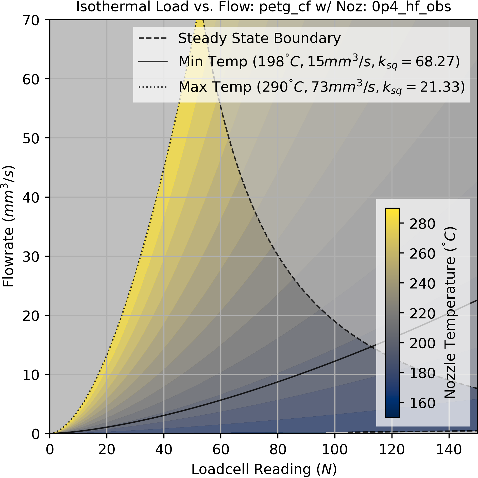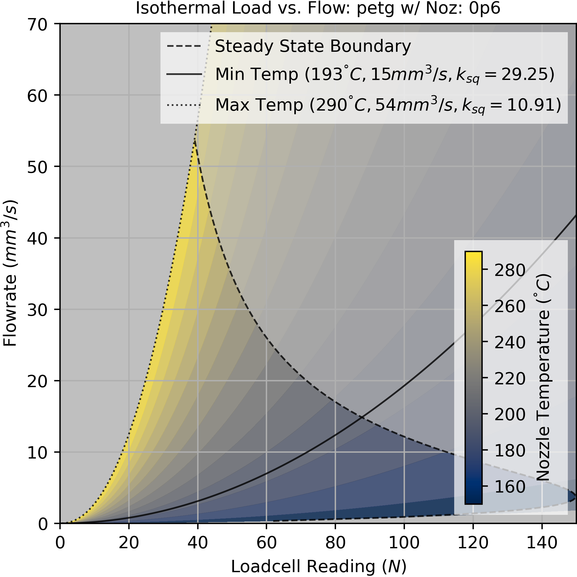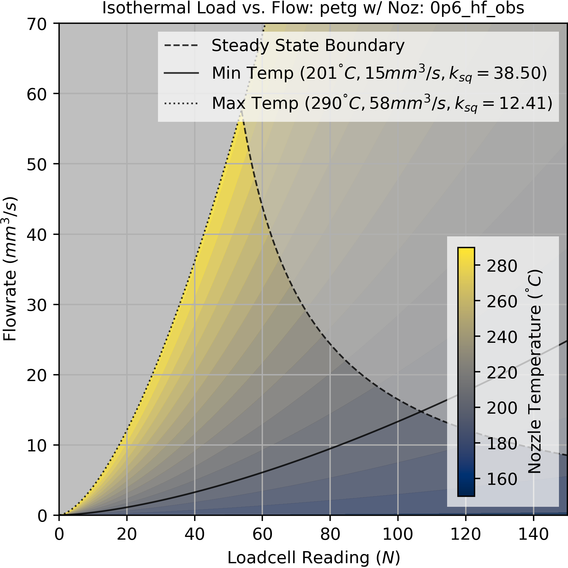 - Where we use a steady-state and isothermal flow model (and then interpolate between them) (having carefully designed tests to contain data in each of these regimes), data taken during prints is almost always between these two states. That makes Section 6.12.2 a prerequisite for this step.