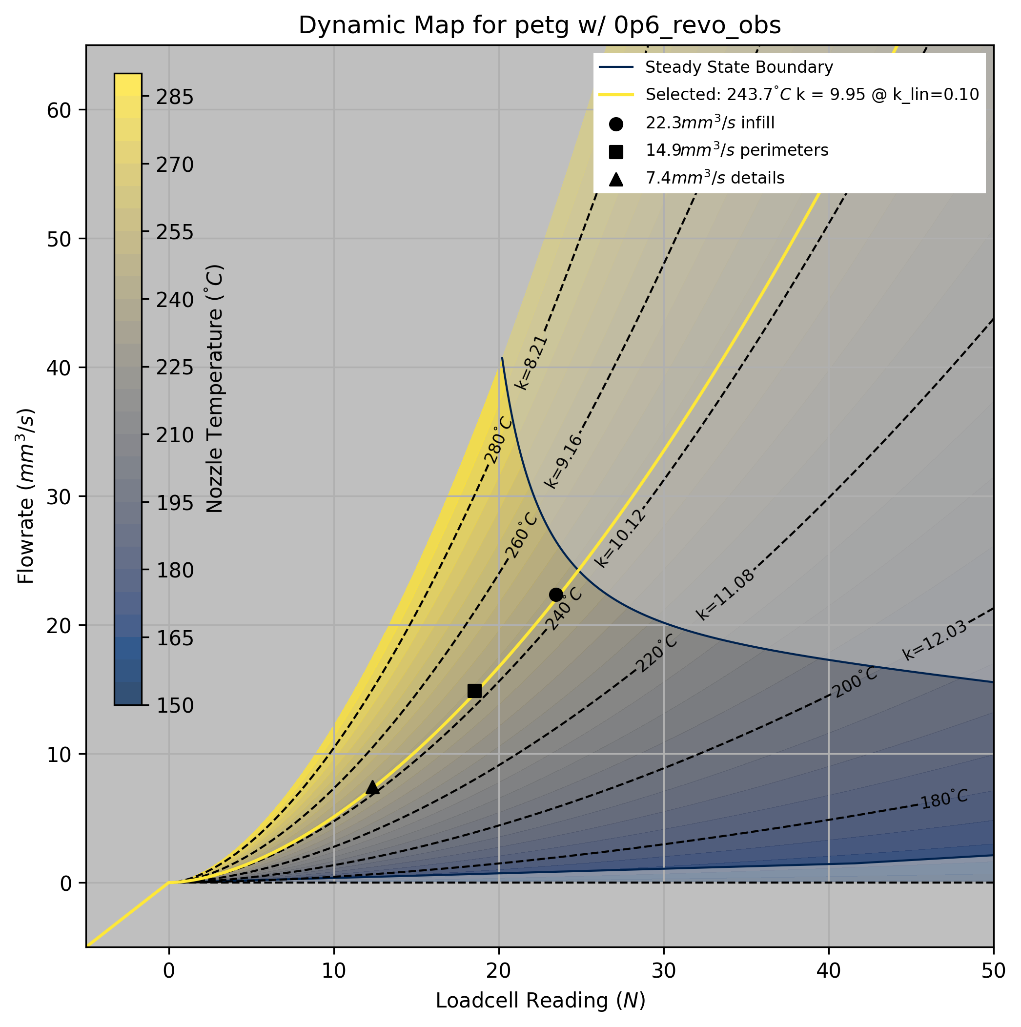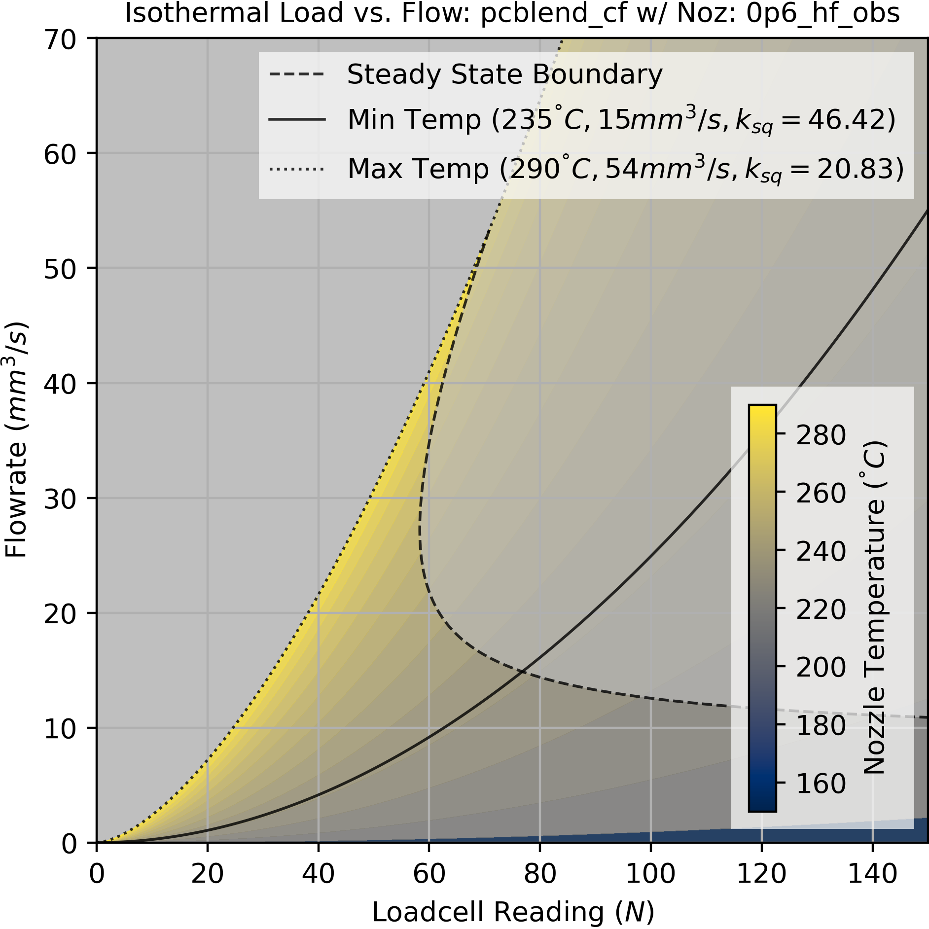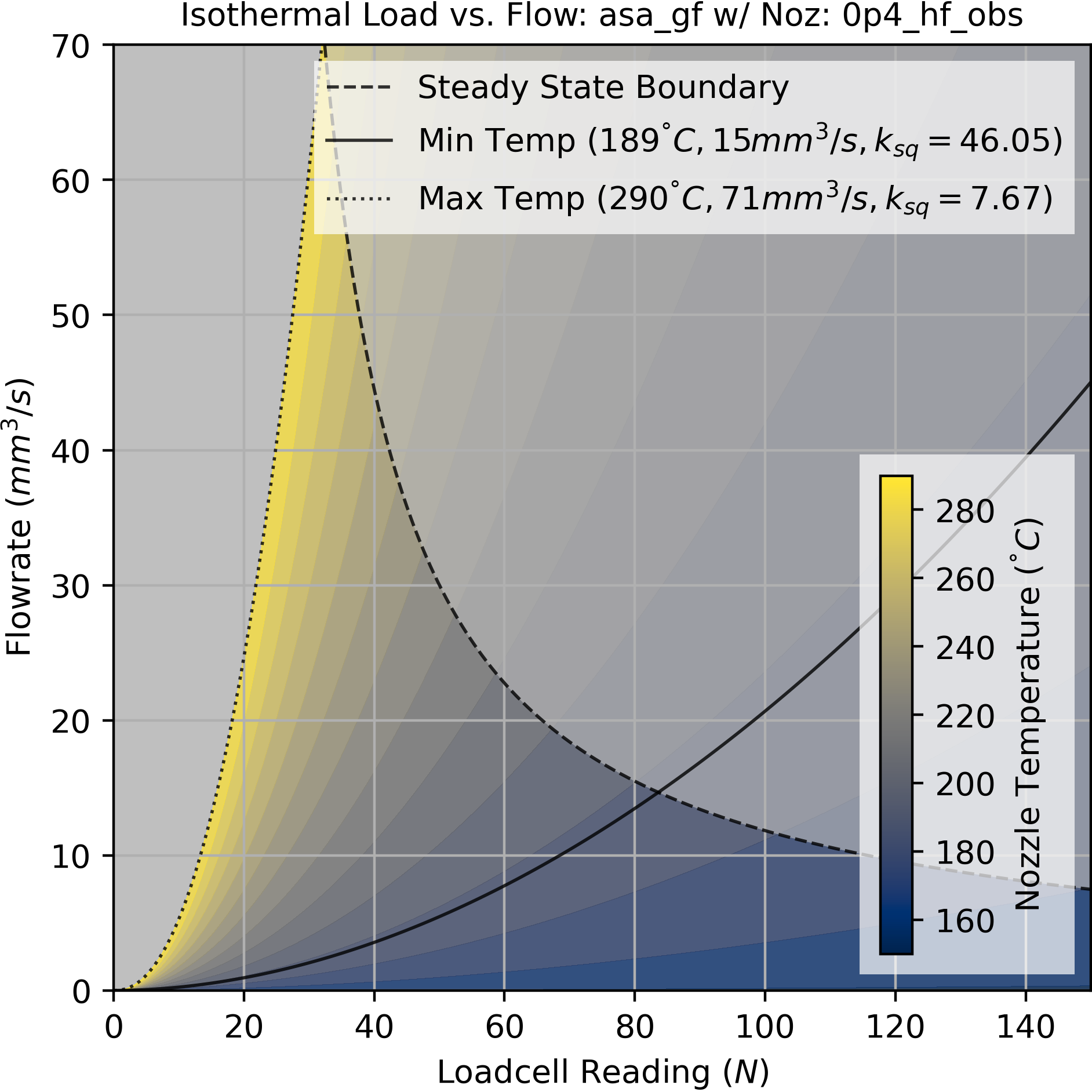- Where we use a steady-state and isothermal flow model (and then interpolate between them) (having carefully designed tests to contain data in each of these regimes), data taken during prints is almost always between these two states. That makes Section 6.12.2 a prerequisite for this step.