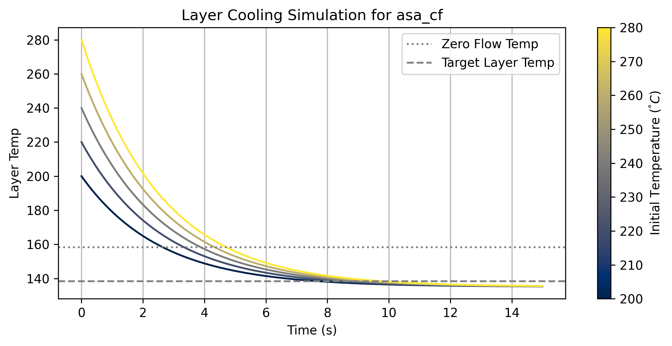 If we see anything from our print data and i.e. Section 6.11.2 it’s that cooling is (very often) the most saturated limit. However, our cooling model is perhaps the least well developed out of our collection, missing estimates for filament conductivity, cooling to air, and missing entirely cooling beyond the immediate layer.