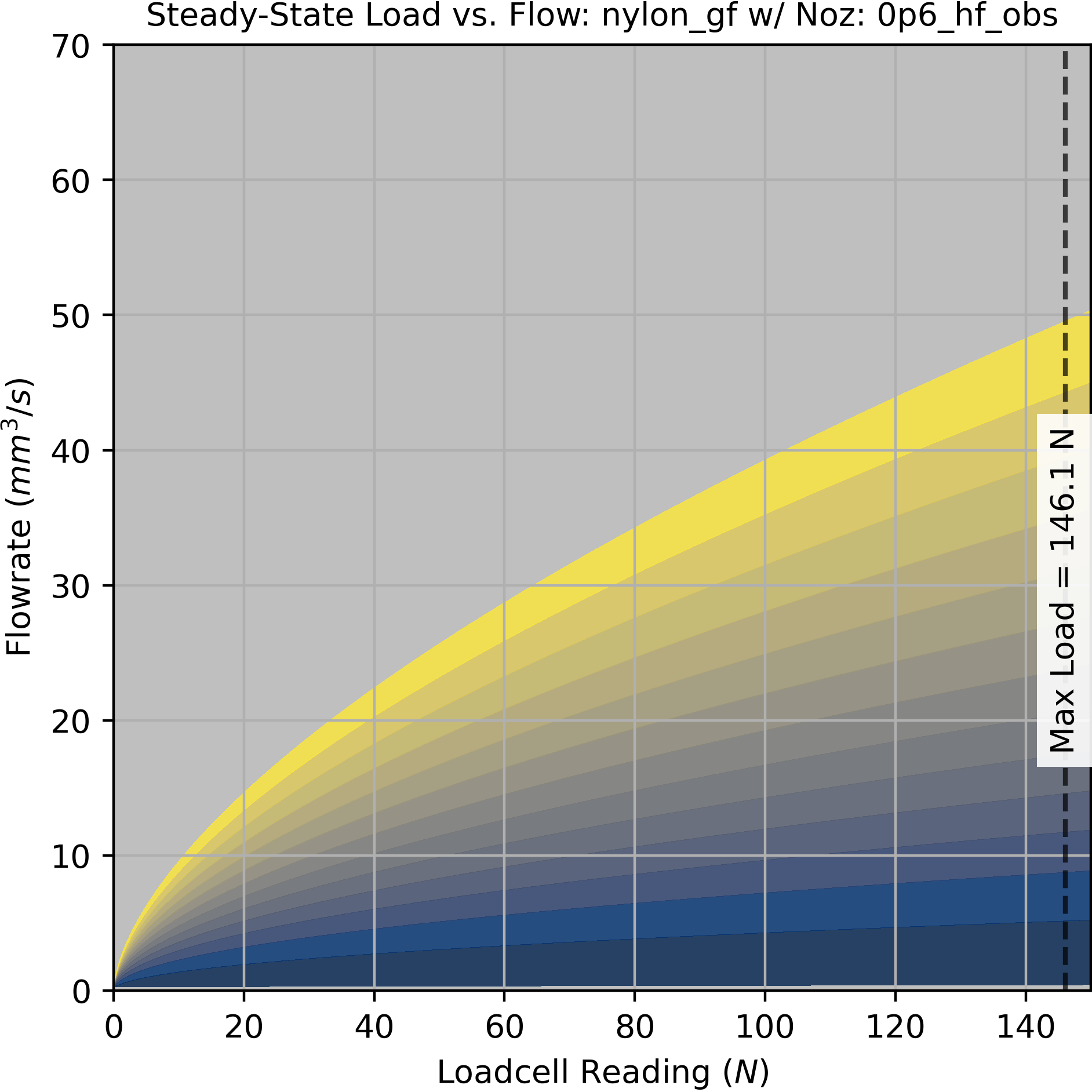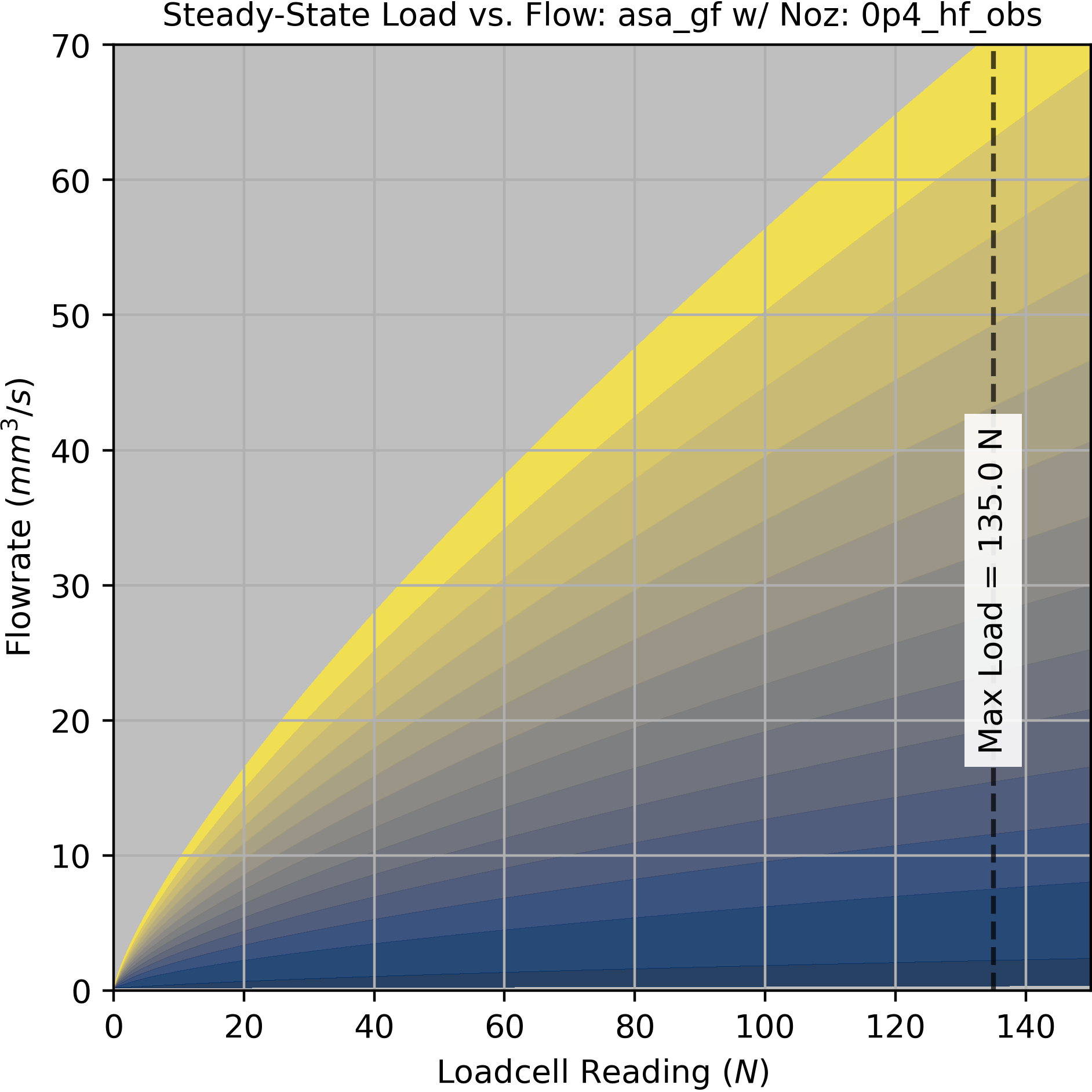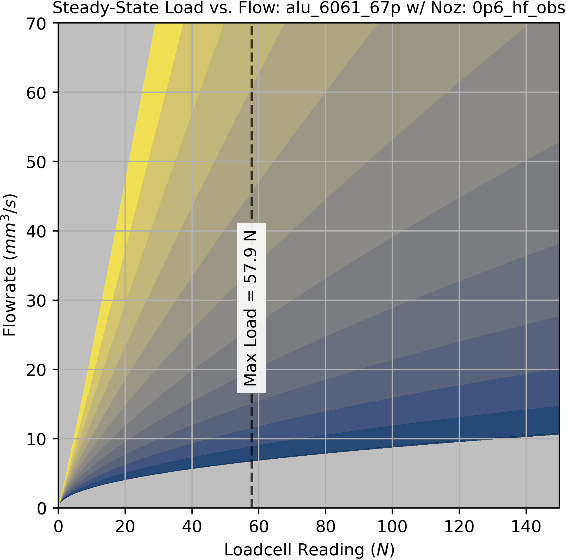 In Section 8.2, I discuss how figures or models like these could be used by i.e. nozzle manufacturers and customers to better articulate performance improvements or characteristics. For example a standard datasheet for a motor includes a torque curve, but in the state-of-the-art nozzle manufacturers only include scalar values for “maximum flow” for their nozzles - which are not even normalized across materials.