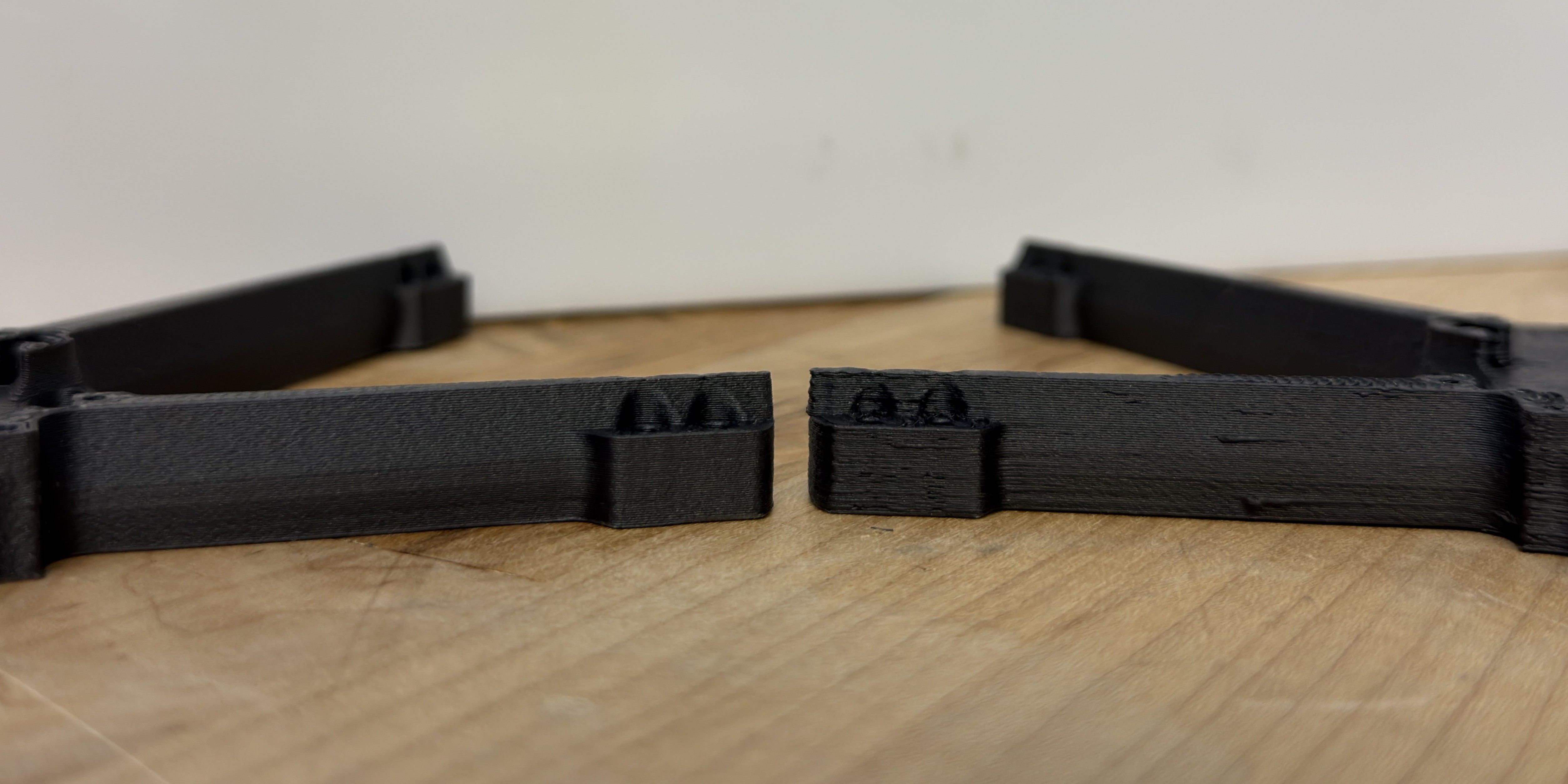 In these cases, the models used to process the files was still consistent with the nozzle that was used to print the parts: I swapped it before making models, not between model-making and printing. This means that the only thing amiss is that the print widths were configured for a 0.6mm nozzle, while the nozzle was actually 0.4mm. The system is resilient to this error since track widths are not dependent on nozzle diameter, only on total flowrate per unit of spatial displacement \((mm^3/mm),\) which can be forced out of a nozzle of any size.