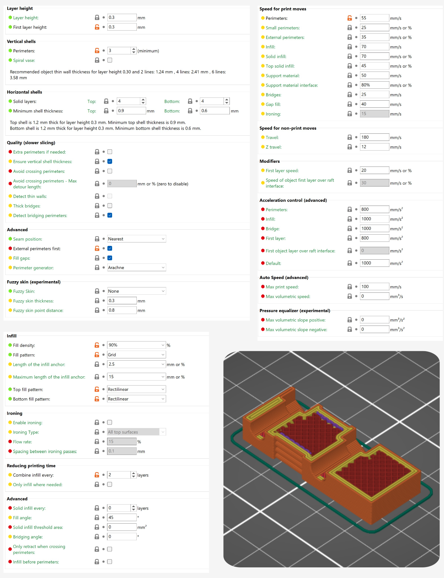 | Perimeters | \(d_{nozzle} \cdot 1.25\) | \(mm\) | Geometry, Flow |