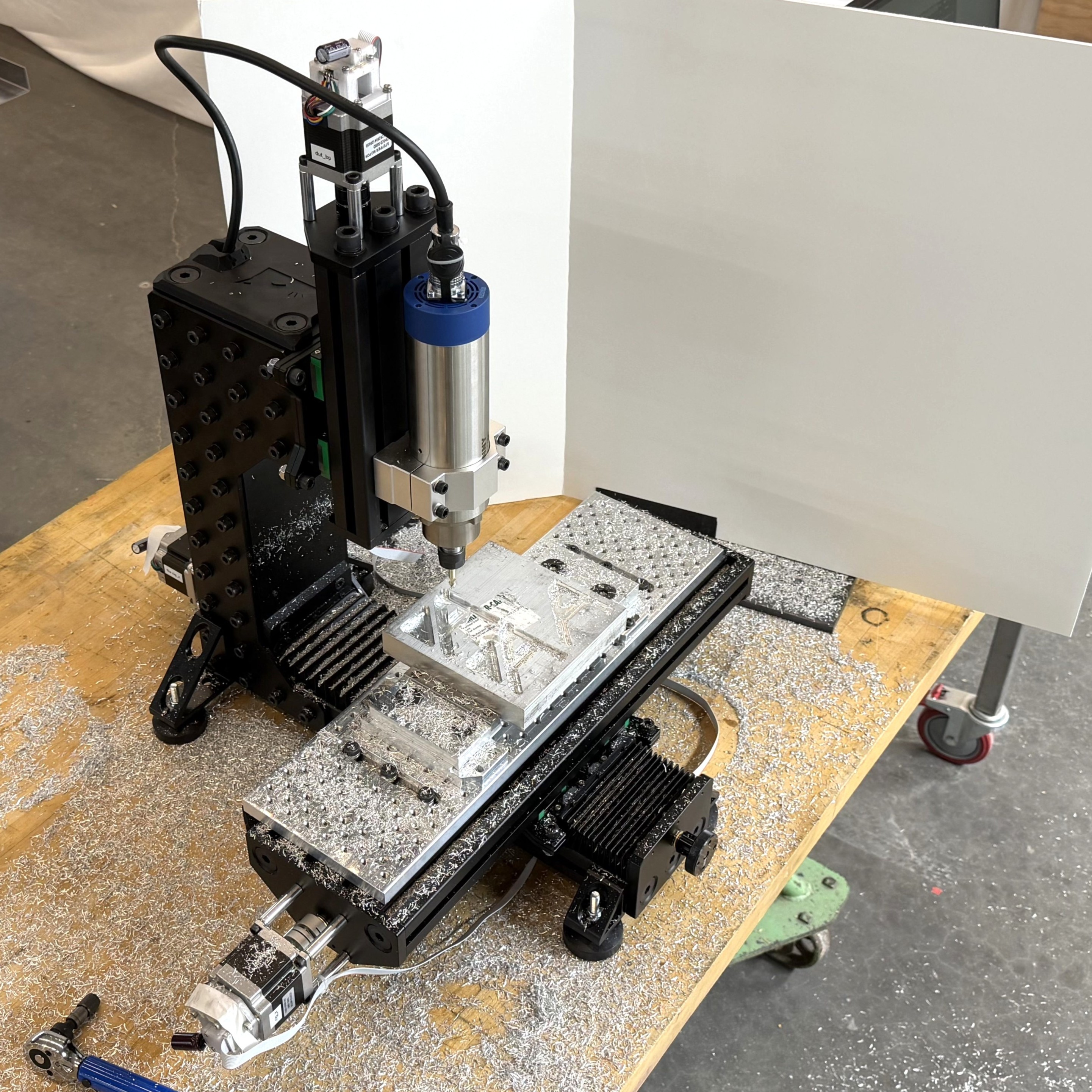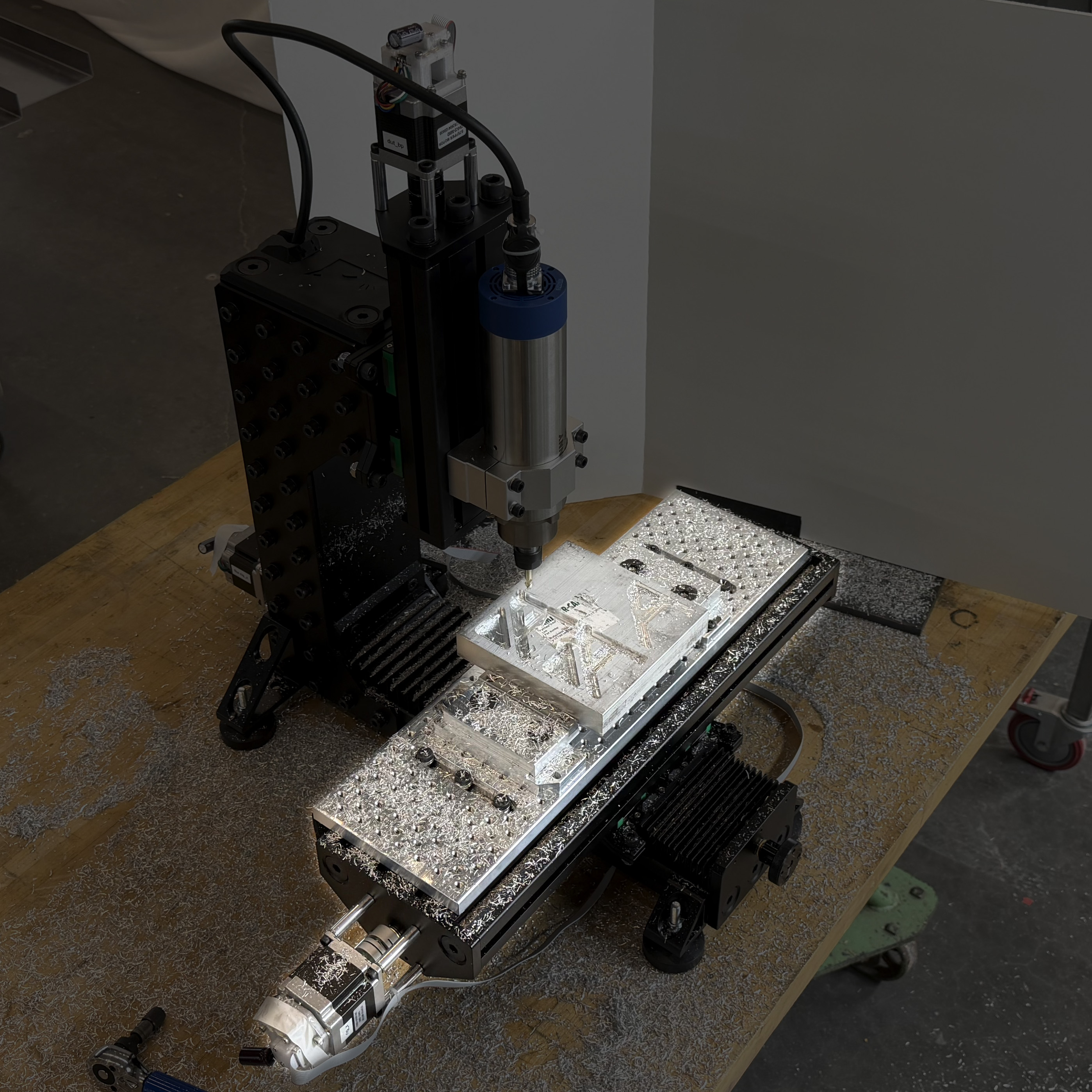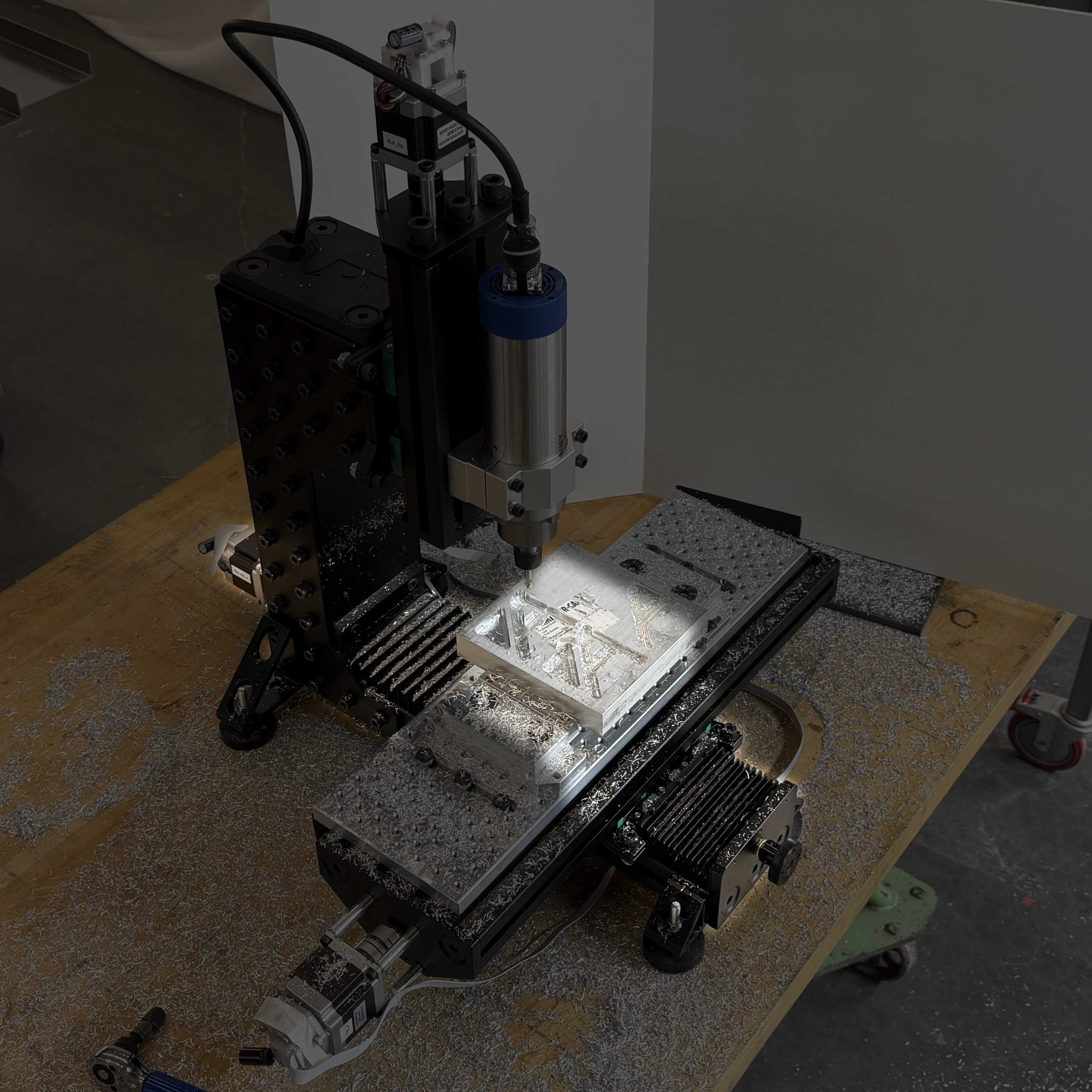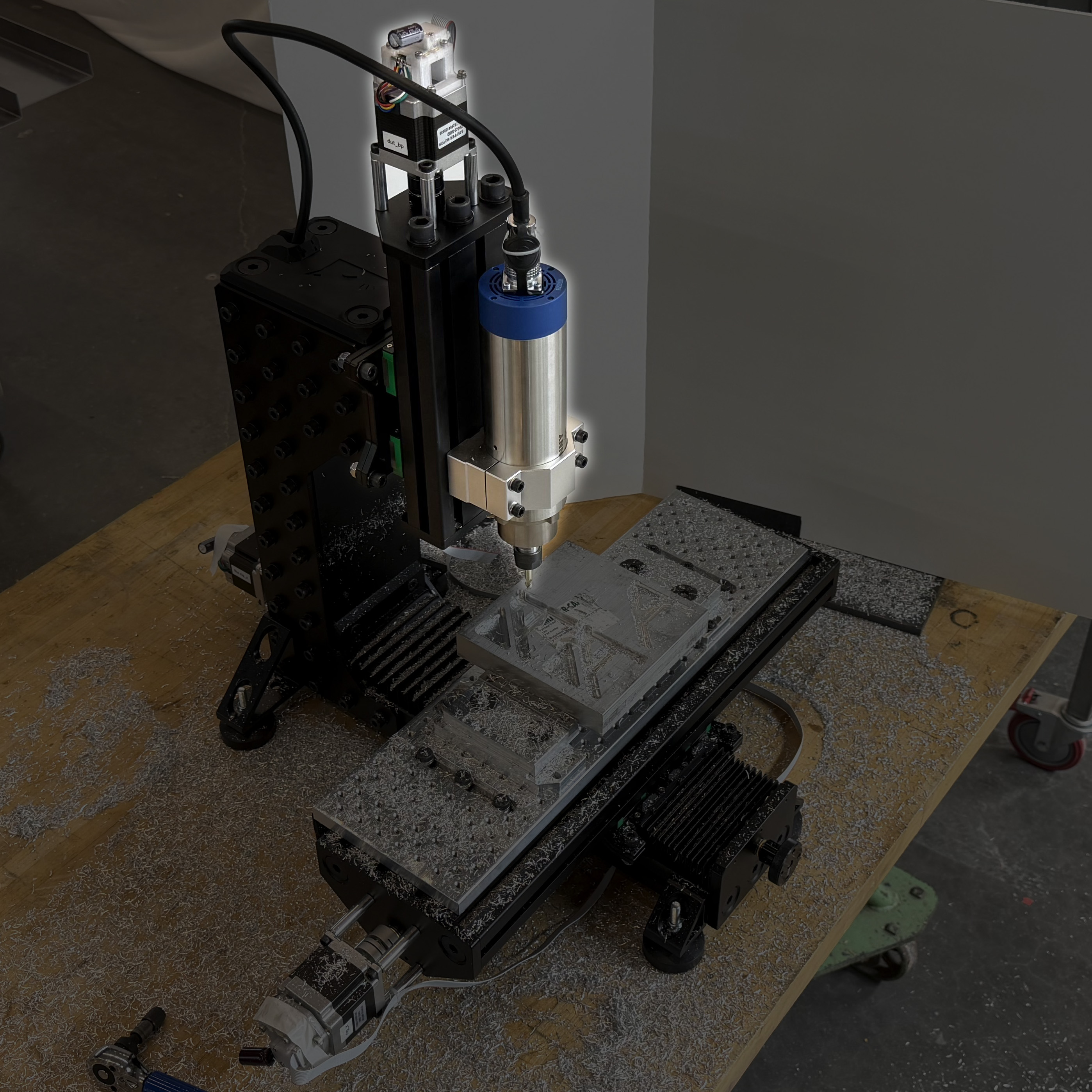 I used the tools and methods described in this chapter to outfit a small milling machine. The machine was assembled from a Rat Rig Mill kit (2024) and a GPenny Spindle which is rated to 1.5kW (about two horsepower) and runs up to 24000 RPM (2019). The spindle has an ER16 collet and is 65mm in diameter, and is controlled by a generic VFD powered on single phase 110V.