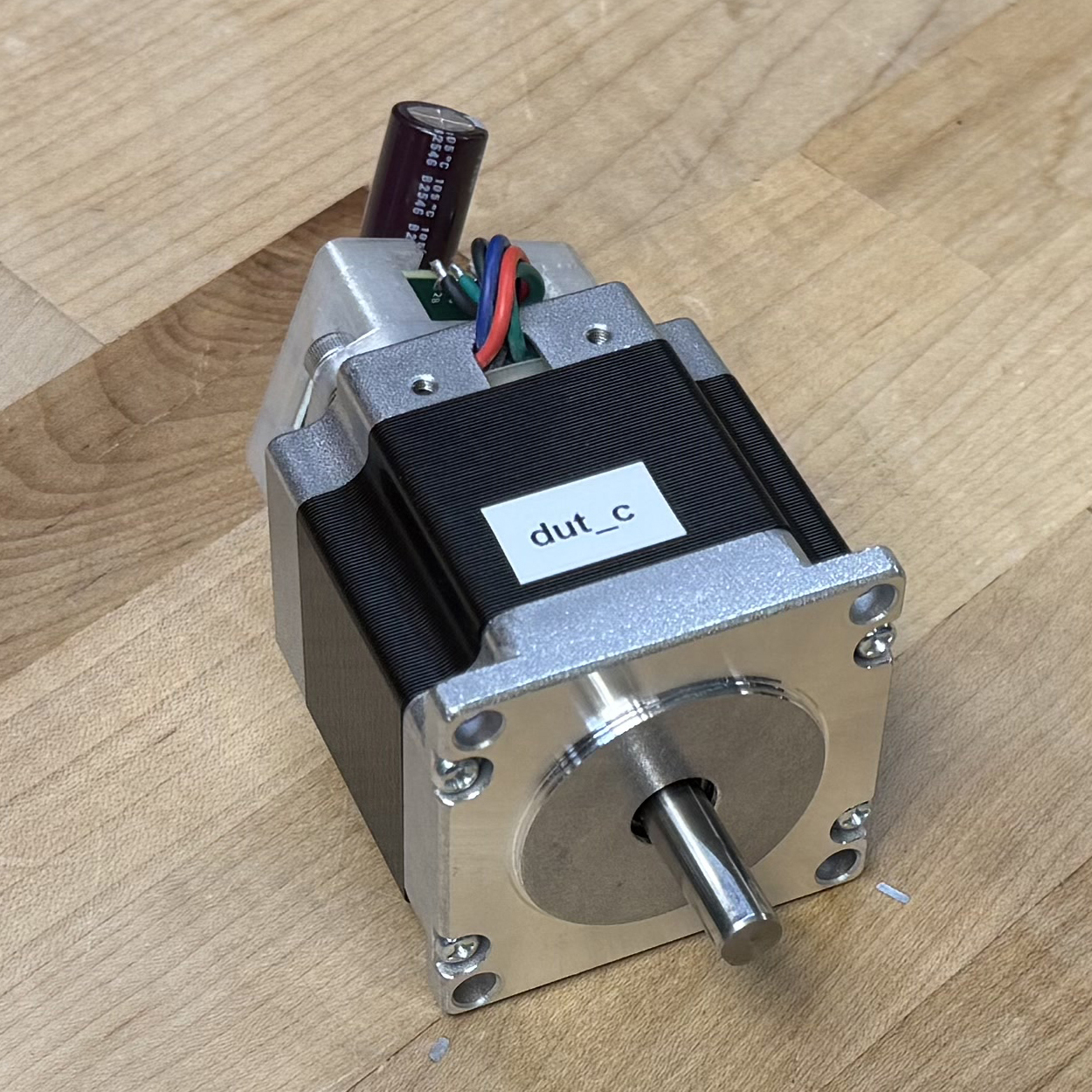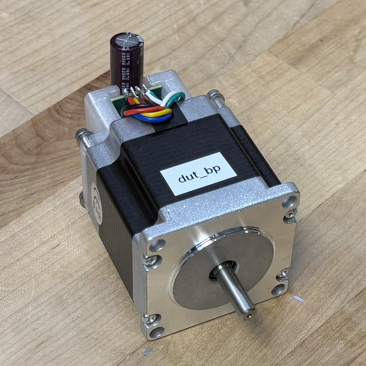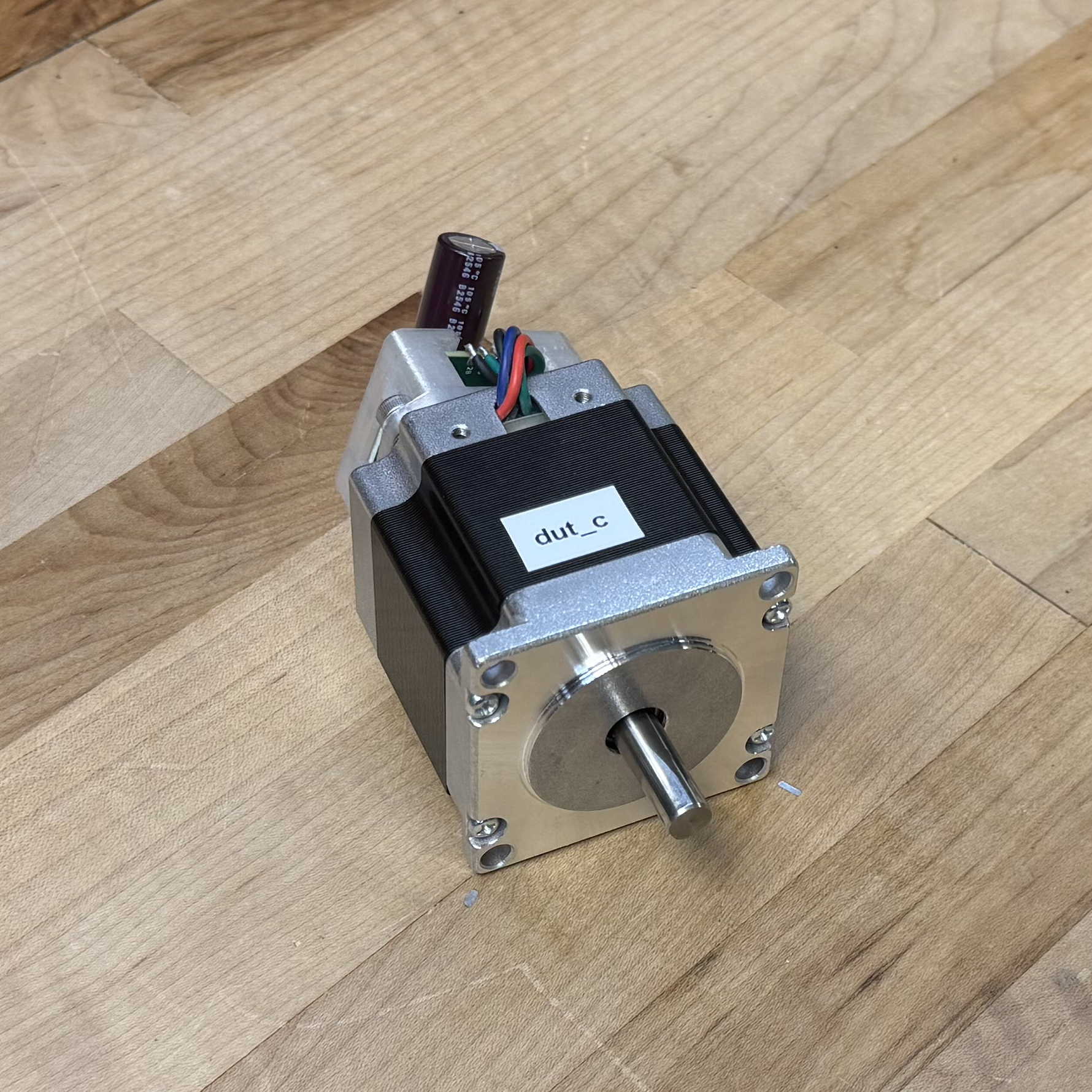 I selected four candidate motors from our stock bins at the CBA. Each is a NEMA23 size (a faceplate dimension standard, and a requirement of our machine’s frame), but have varying electrical properties and lengths. I used the method from 5.3.1 to generate an encoder calibration and model for each (this takes about 10 minutes per motor). The resulting torque curves are plotted below, and parameters are tabulated in 7.1, where I include values also for the motor that Rat Rig specifies for the CNC kit.