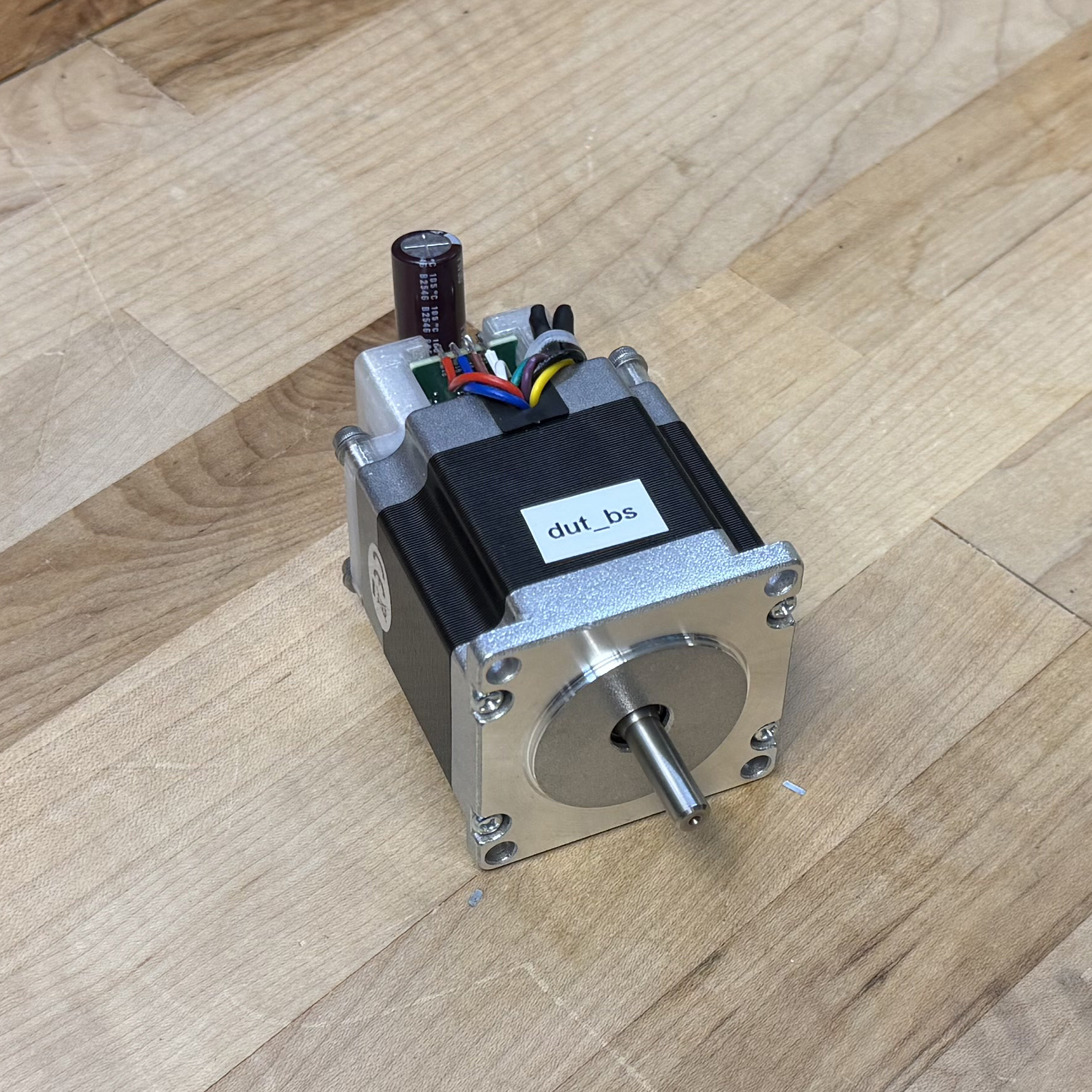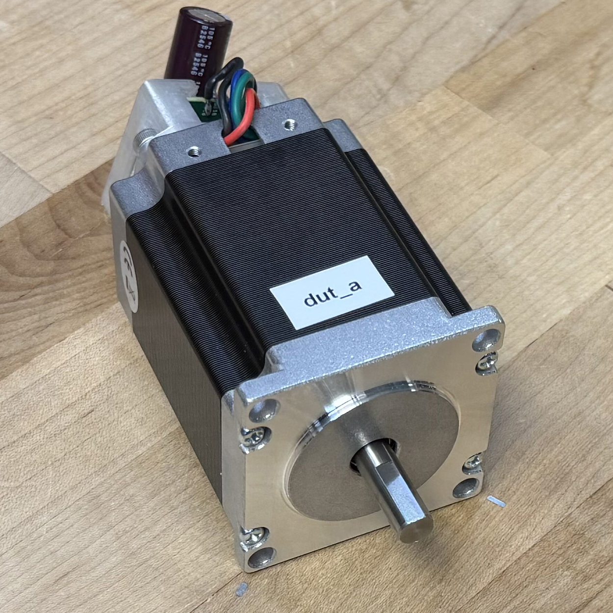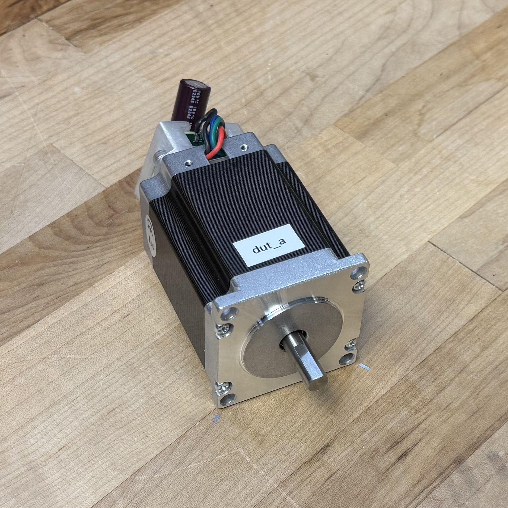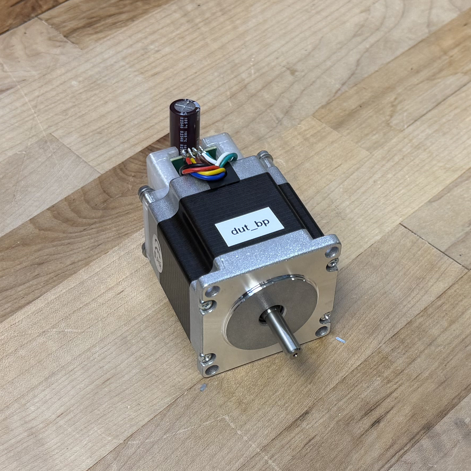 I selected four candidate motors from our stock bins at the CBA. Each is a NEMA23 size (a faceplate dimension standard, and a requirement of our machine’s frame), but have varying electrical properties and lengths. I used the method from 5.3.1 to generate an encoder calibration and model for each (this takes about 10 minutes per motor). The resulting torque curves are plotted below, and parameters are tabulated in 7.1, where I include values also for the motor that Rat Rig specifies for the CNC kit.