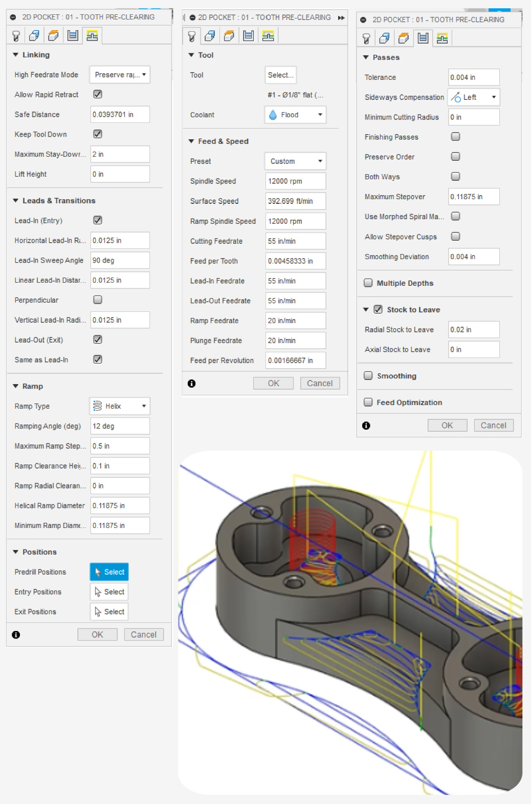 | Ramp Angle | \(0.6^\circ\) | Helical angle for plunges. |