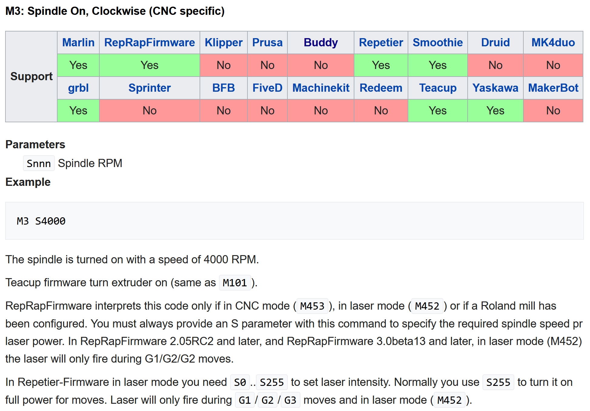 M3at Line 07 above) should do (and whether they are supported on the particular firmware they are using). Machine vendors with closed controllers should provide a similar table.